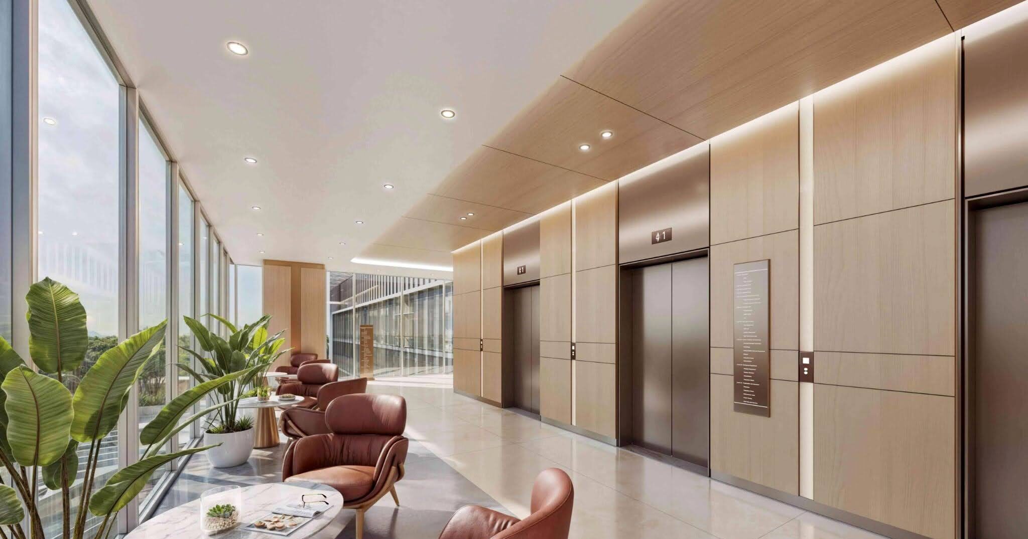 The building features a diamond-patterned façade that resembles a jewel box, establishing it as a radiant landmark signifying the value of health and well-being. Interior spaces are infused with biophilic elements, featuring natural materiality and local stones that symbolize strength and renewal.